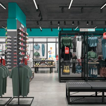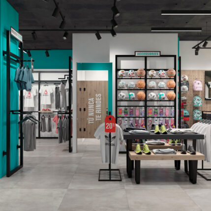 Reforma y diseño interior de tienda multi deporte.
